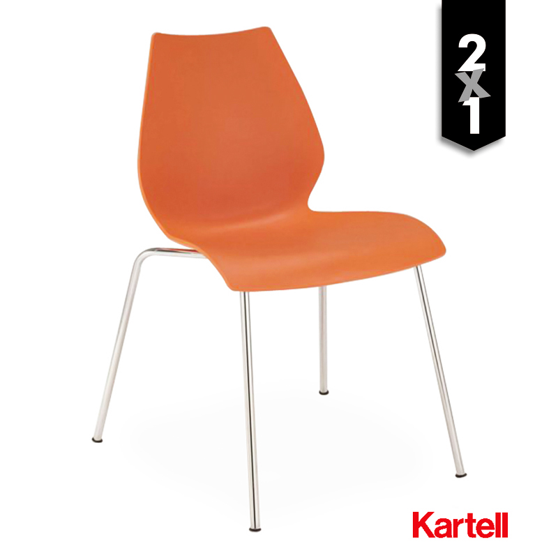 La estructura única del respaldo y el asiento es de polipropileno y está fijada por una estructura de acero cromado.