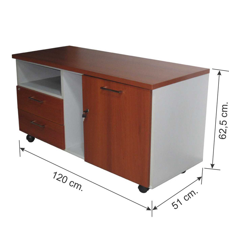 2 cajones con cerradura centralizada, espacios abiertos, puerta batiente con cerradura.