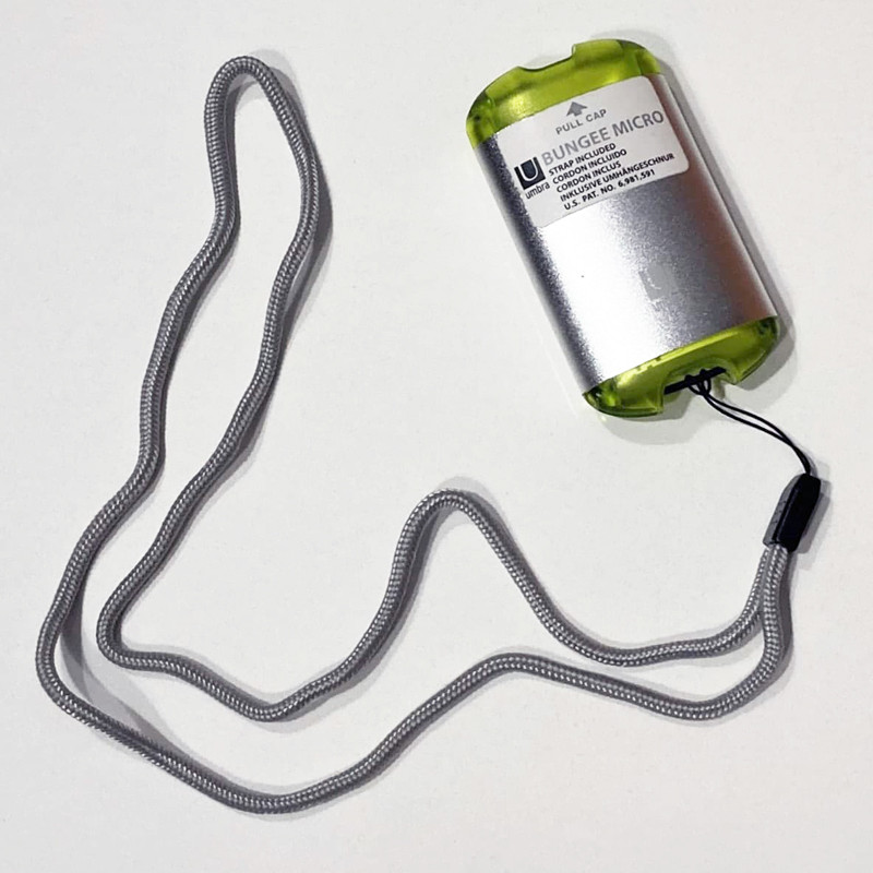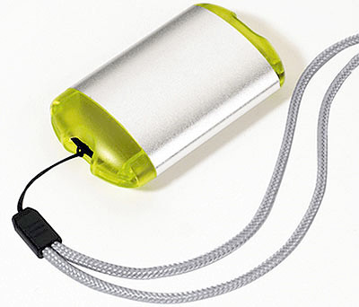 Cabe facilmente en el bolsillo o en el bolso. Incluye correa para colgar a modo de collar.