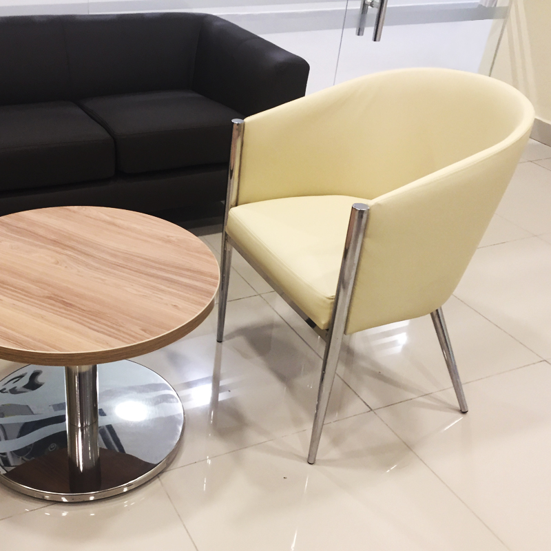 Respaldo curvo envolvente fabricado en multilaminado de madera y asiento con espuma inyectada,