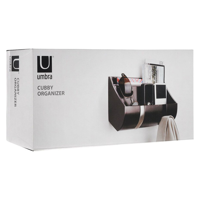Organizador de madera color espresso con 2 metales abatibles.