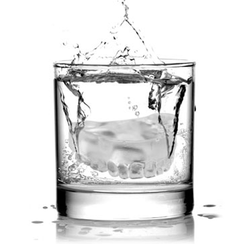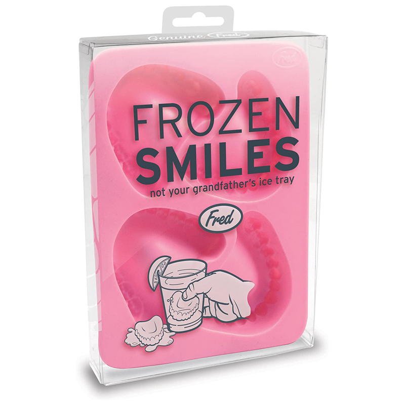 Bandeja de 4 cubitos de hielo con forma de dentaduras.