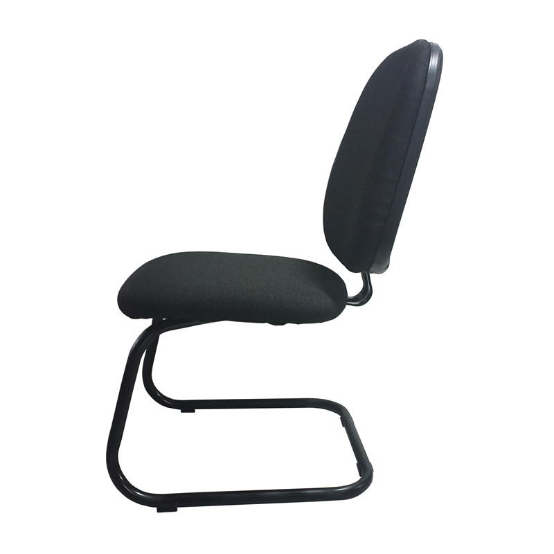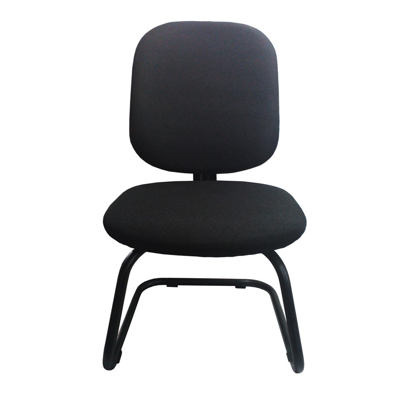 Silla interlocutor, base trineo pintada en epoxi negro, carcazas interiores de madera, trasera de respaldo plastica, espuma inyectada, tapizada en tela negra.