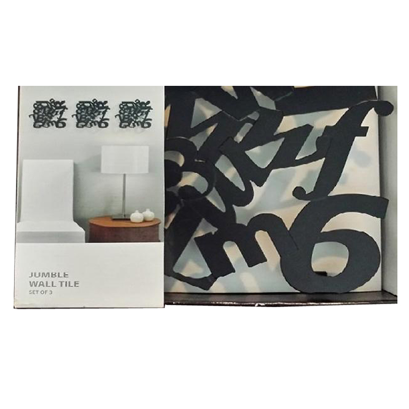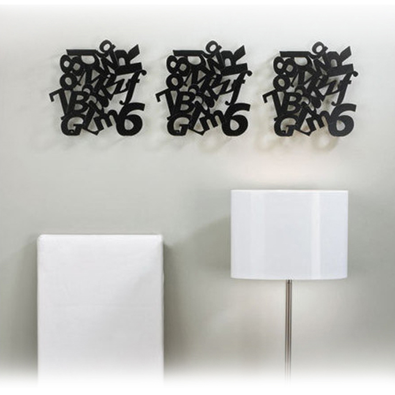 Set de 3 apliques, fabricado en acero estampado con tipografias diferentes.