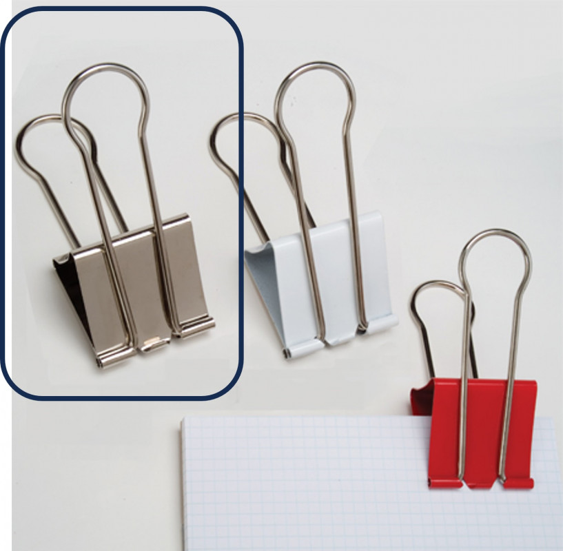 Pinza para papeles Extra-Grande. Medida total 15cm x 7 cm. Color Plata