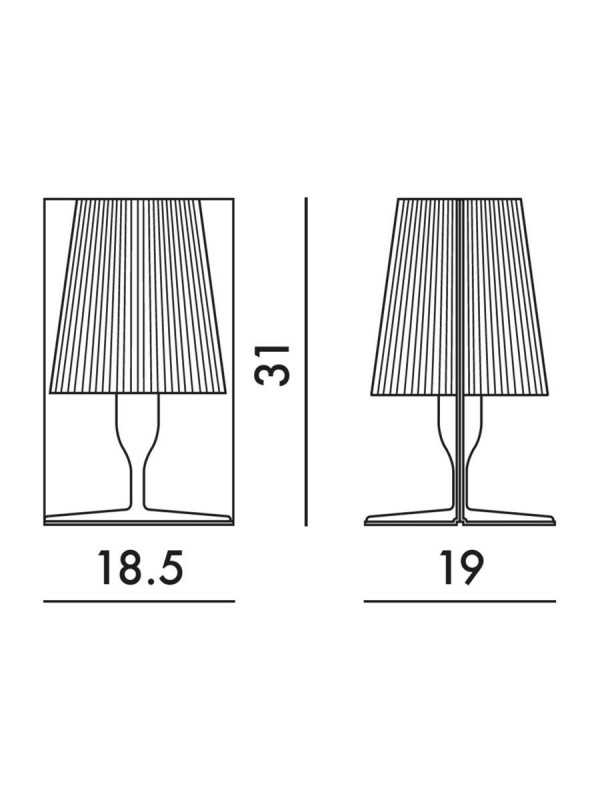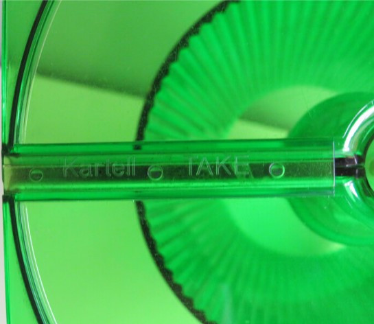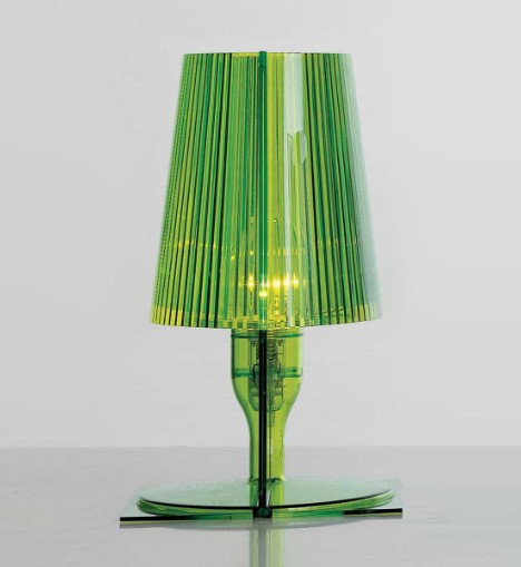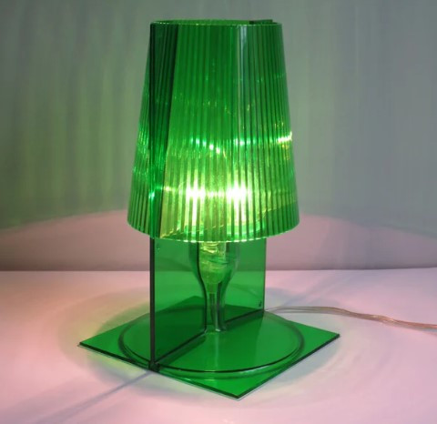 TAKE, diseñada por Ferruccio Laviani, es el ícono clásico de la lámpara sobre la mesita de luz, totalmente renovada. Lámpara creada con proceso de inyección en policarbonato transparente u opaco en diversas tonalidades cromáticas. Base simétrica con láminas planas y pantalla plisada. Color VERDE . Marca KARTELL - Producto original. Made in Italy