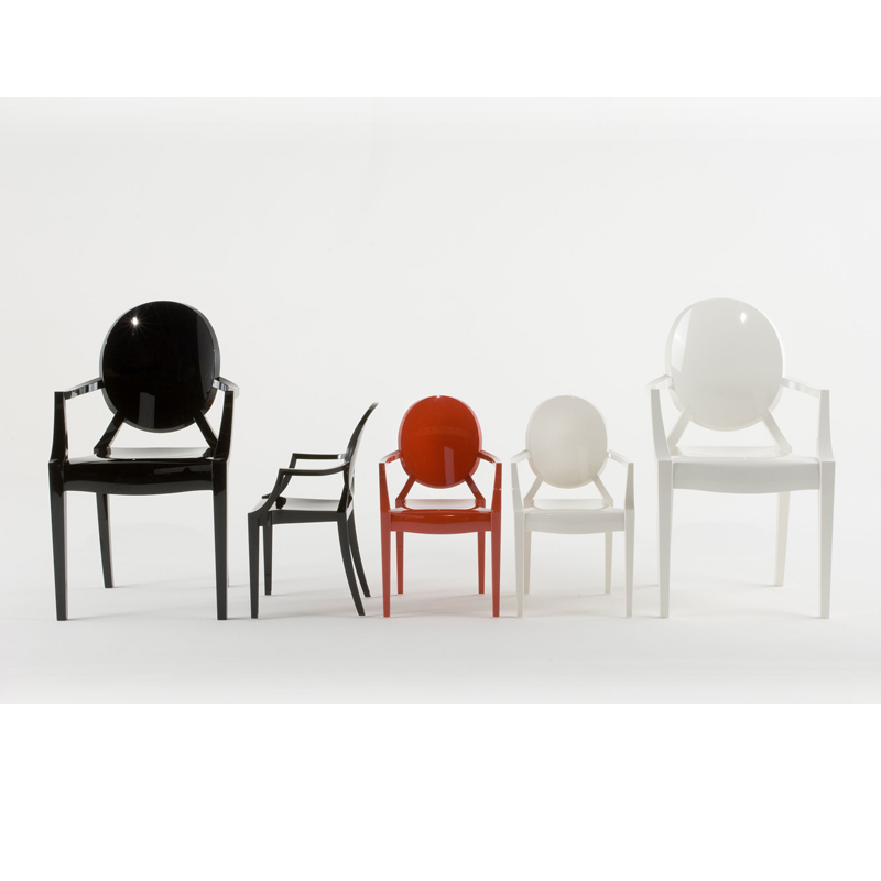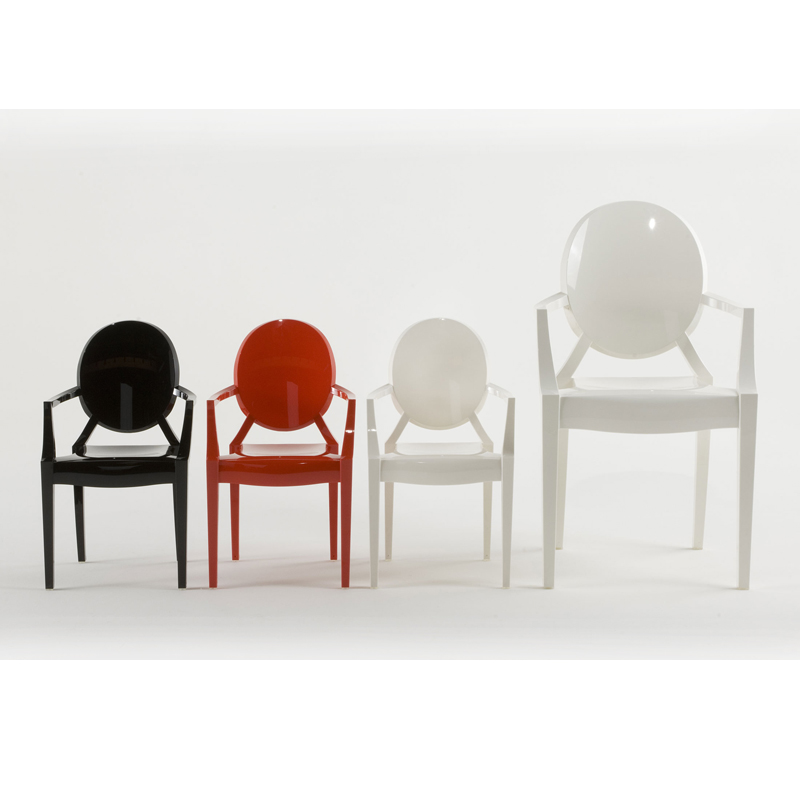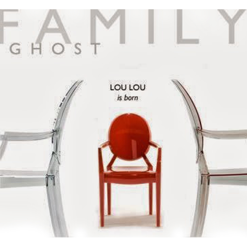 Diseñada por Philippe Starck. Lou Lou Ghost es la versión “baby” de la celebérrima Louis Ghost, de la que toma las formas clásicas, el material y la ergonomía, con profusión de dibujos del mundo infantil que, además, pueden personalizarse. Estructura en policarbonato coloreado en masa.