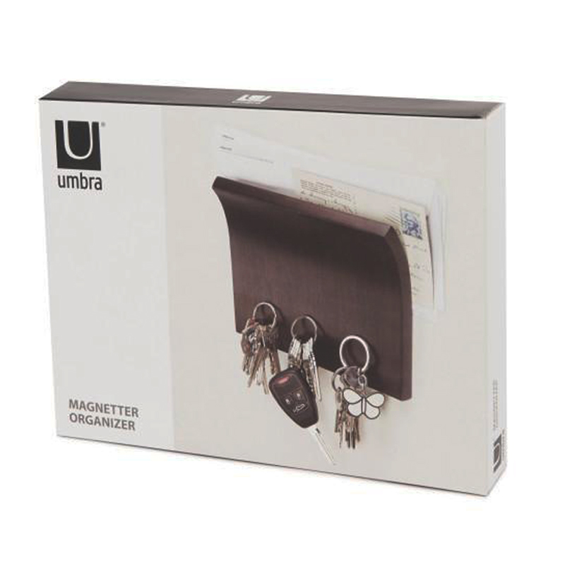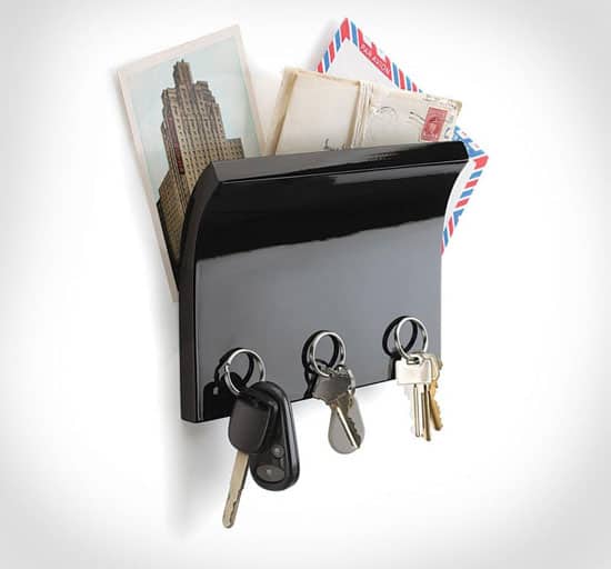 Posee una tira magnetica bajo la madera para sujetar llaves.