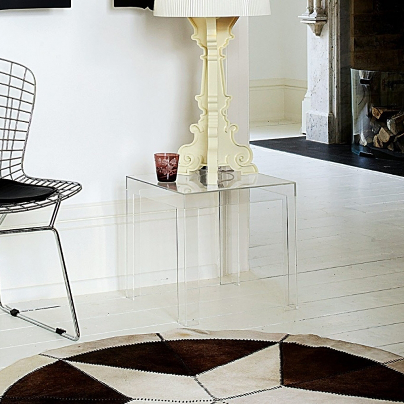 Diseñada por Paolo Rizzato. JOLLY es una mesita totalmente transparente de un tamaño reducido y perfecto 40 x 40 x 40 cm. Práctica segura y funcional.