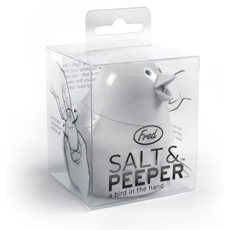 Salero y pimentero con forma de pajarito.